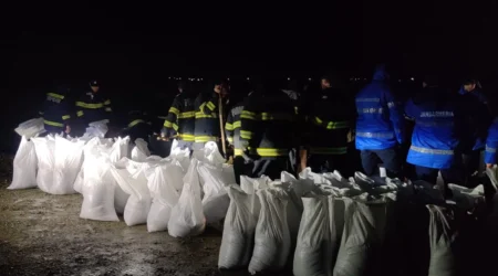 Viitură pe râul Putna. Diguri mobile și mii de saci de nisip, instalate pentru protejarea localității Mircești