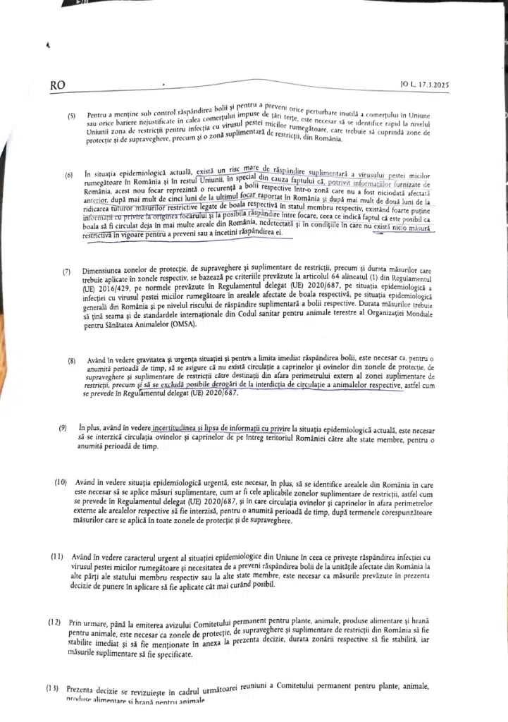 Fără să existe o fundamentare clară și bine argumentată epidemiologic, dar bazată doar pe incertitudine și „că este posibil”, șeful ANSVSA, Alexandru Bociu, a dispus ieri interzicerea tuturor exporturilor de oi și capre din România din cauza apariției a două focare de pestă a micilor rumegătoare apărute în județele Bihor și Arad. Invocând „apariția unui focar cu virusul pestei micilor rumegătoare la caprine sau la ovine, există un risc mare de răspândire a bolii respective la alte unități de ovine sau de caprine” și „având în vedere incertitudineaa și lipsa de informații cu privire la situația epidemiologică actuală”, Alexandru Bociu a decis că „este necesar să se interzică circulația ovinelor și caprinelor de pe întreg teritoriul României către alte state membre (nr. UE) pentru o anumită perioadă”, adică până în iunie 2025.