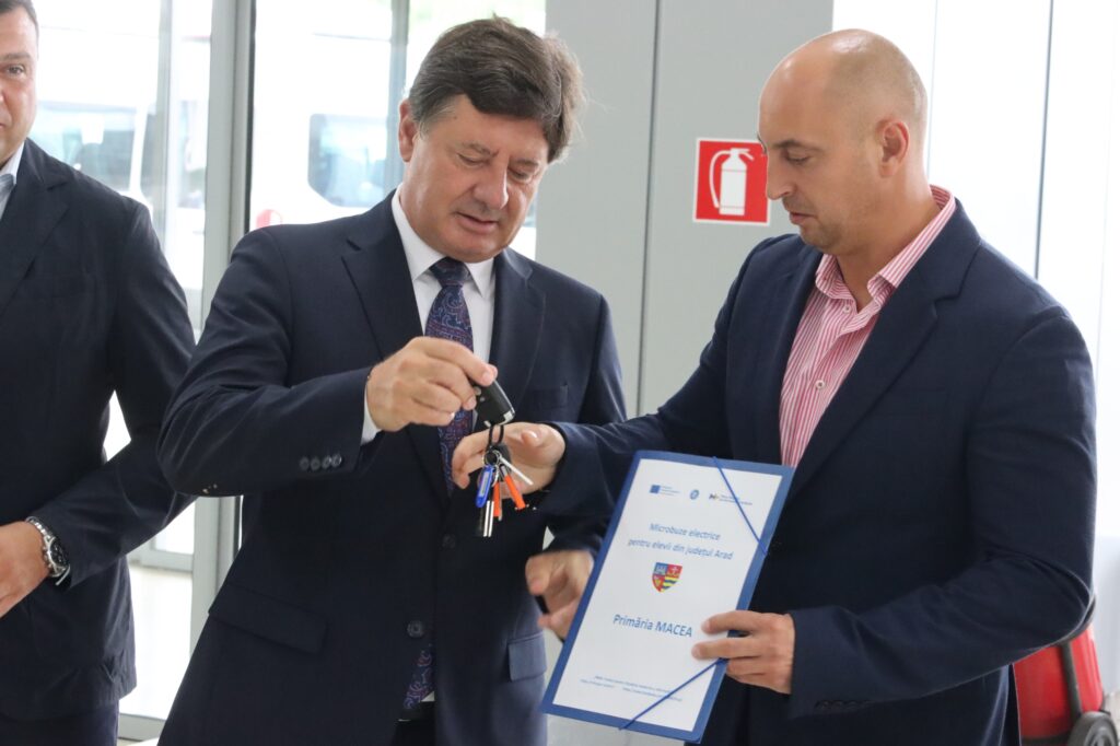 Încă șase microbuze electrice școlare au fost recepționate, astăzi, de Consiliul Județean Arad și predate primarilor din județul Arad pentru a fi folosite la transportul elevilor. Diferența față de restul celorlalte modele identice Ford, achiziționate anterior prin PNRR? O „banală” ieftinire de circa 80.000 euro per bucată. Motivele sunt însă neclare, dar s-ar putea să fie vorba și de o influență a faptului că la ora actuală există și o anchetă a Parchetului European pe temă. Consiliul Județean Arad a fost printre cele peste 40 de instituții din țară care au beneficiat de programul PNRR, prin care a cumpărat, în total, 33 … - Nicușor Dan: Nu voi fi de acord cu un Guvern minoritar PNL susținut de AUR