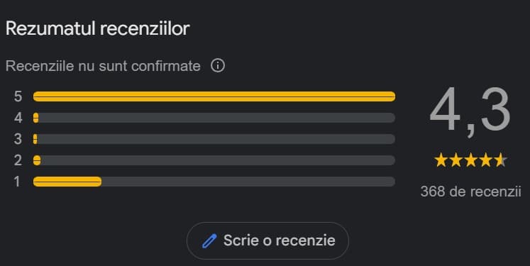 O simplă privire peste recenziile de pe Google scoate la iveală un tipar îngrijorător. Aproape un sfert dintre evaluările salonului sunt de o singură stea, plângerile clienților fiind multiple și constante. Această proporție uriașă de nemulțumiri arată clar că multe dintre recenziile de 5 stele sunt, cel mai probabil, false, cumpărate sau generate artificial tocmai pentru a acoperi criticile și a menține iluzia unui brand exclusivist.