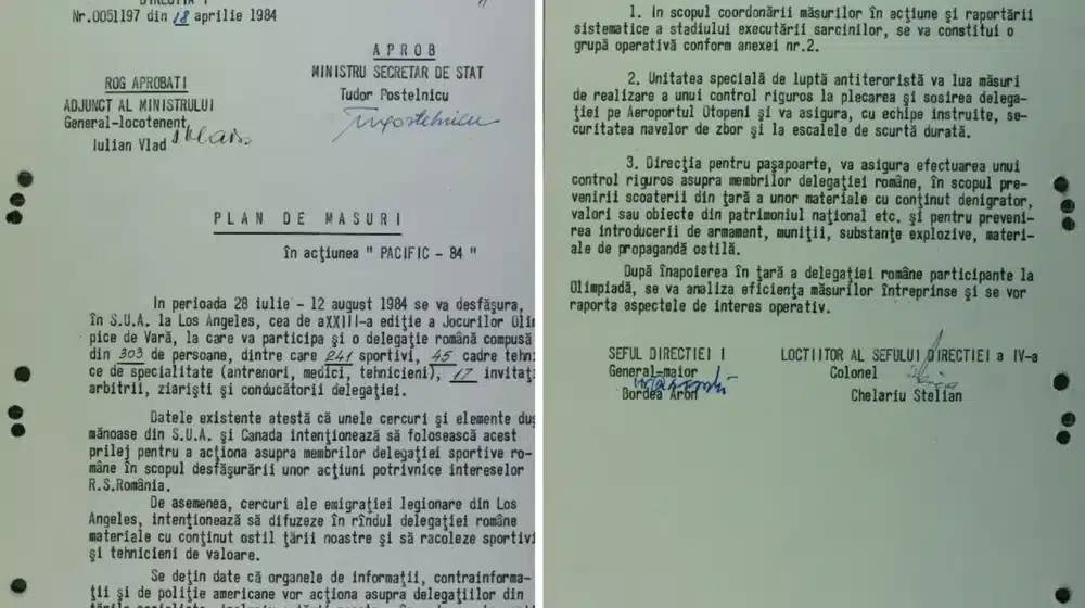 Consiliul Național pentru Studierea Arhivelor Securității a publicat pe pagina proprie de Facebook un documentce conține planul de măsuri luate pentru asigurarea supravegherii informative a sportivilor români care urmau să participe la olimpiada de Vară de la Los Angeles, din 1984. Operațiunea a fost codificată sub numele „Pacific – 84”.