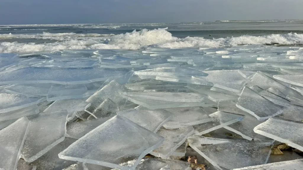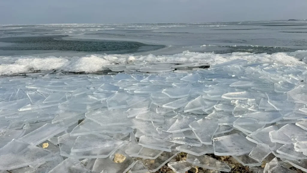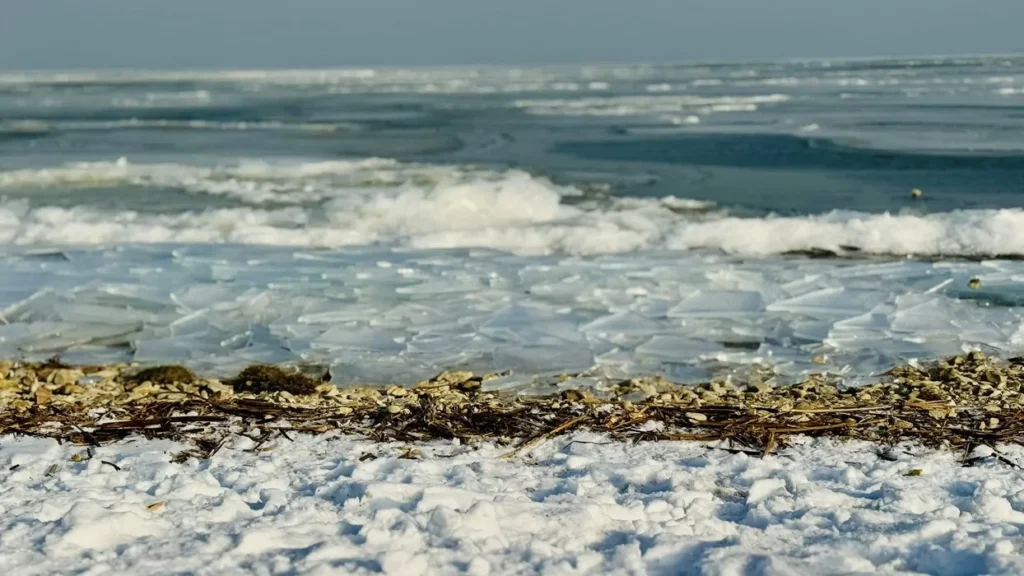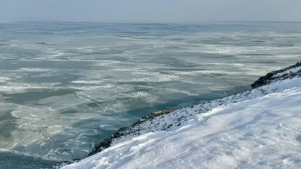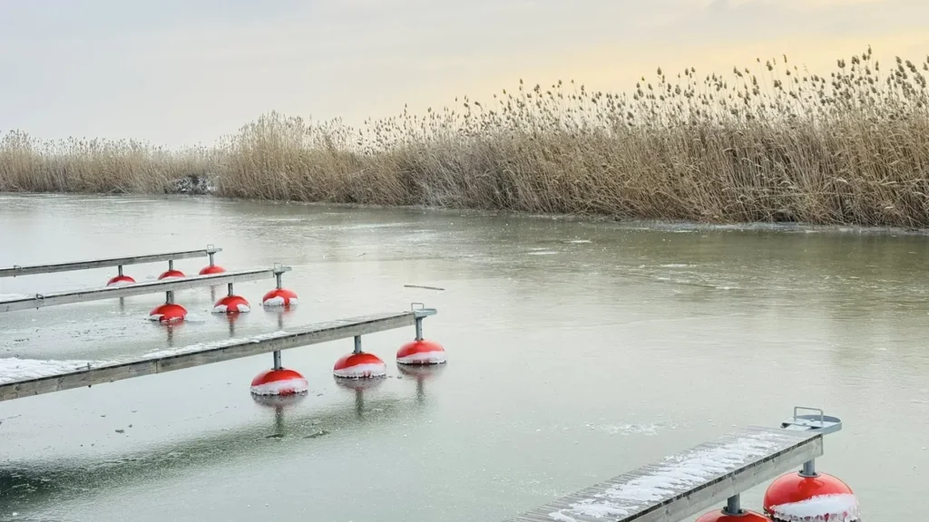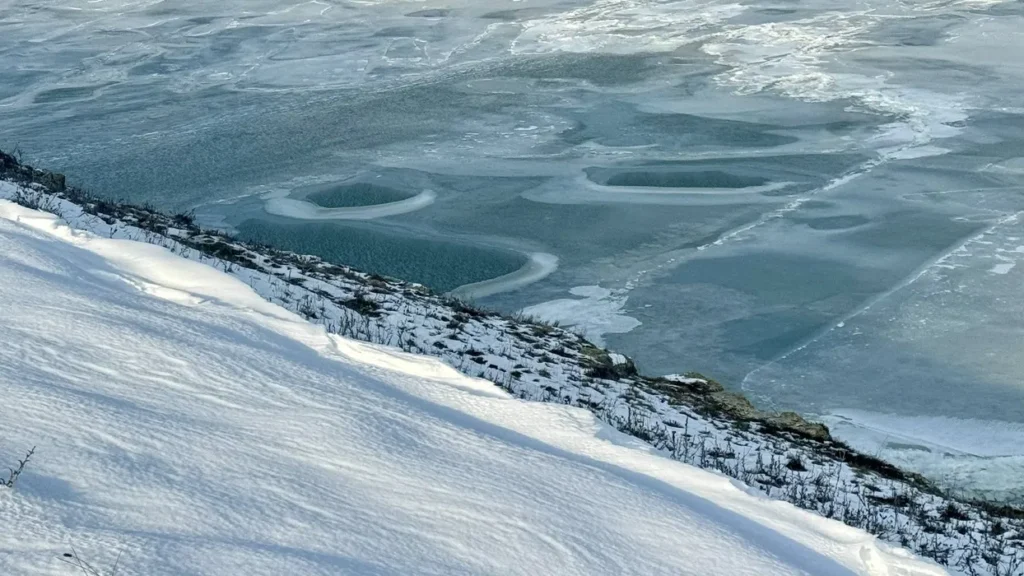 După mai multe zile și nopți geroase în Dobrogea, cel mai mare lac din România a înghețat, la fel ca și canalele din jurul Jurilovcăi, satul tulcean de pe malul acestui lac.