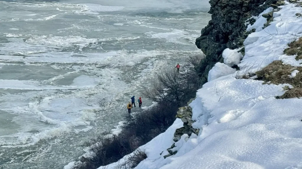 Imagini cu copii care se bucură de canalele înghețate sau bucățile imense de gheață de pe lacul Razelm au fost postate pe pagina de Facebook „Visit Jurilova”.