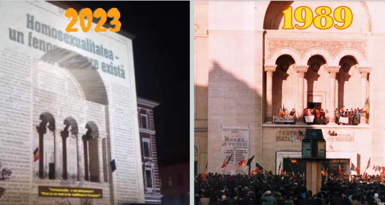 Homosexualitatea, proiectată pe fațada Operei Române din Timișoara! Judecătoarea Adriana Stoicescu: Morții Revoluției se răsucesc în mormânt