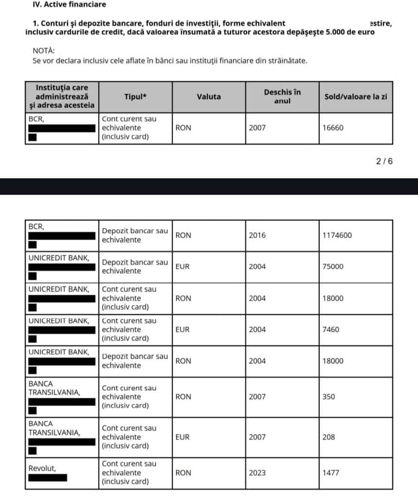 Conform declarațiilor de avere, în anul 2024, avea mai multe conturi bancare și încasa de la stat undeva la 53.000 euro, anual.