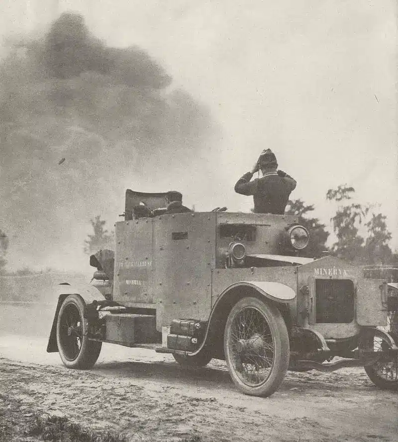 Mașina blindată „Minerva” a fost o mașină blindată militară dezvoltată în mod eficient prin modificarea automobilelor civile Minerva de către Belgia la începutul primului război mondial. Dotare: mitraliere Hotchkiss de 8 mm. Au evoluat bine în perioada de manevră din Primul Război Mondial și s-au dovedit a fi o surpriză neplăcută pentru germani. Dar odată cu începerea războiului de tranșee, Minerva a devenit o „armă” aproape inutilizabilă. Drept urmare, divizia auto blindată belgiană a fost „prezentată” împăratului Nicolae al II-lea și transferată pe frontul rus.
