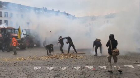 VIDEO: Haos în Piaţa Luxemburg din Bruxelles, unde poliţia foloseşte tunuri cu apă şi gaze lacrimogene împotriva fermierilor