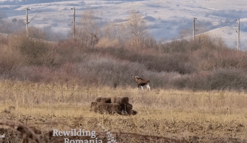 Imaginile cu elanul au fost surprinse de o echipă Rewilding Romania, care a fost mobilizată în teren pentru a verifica prezenţa speciei.